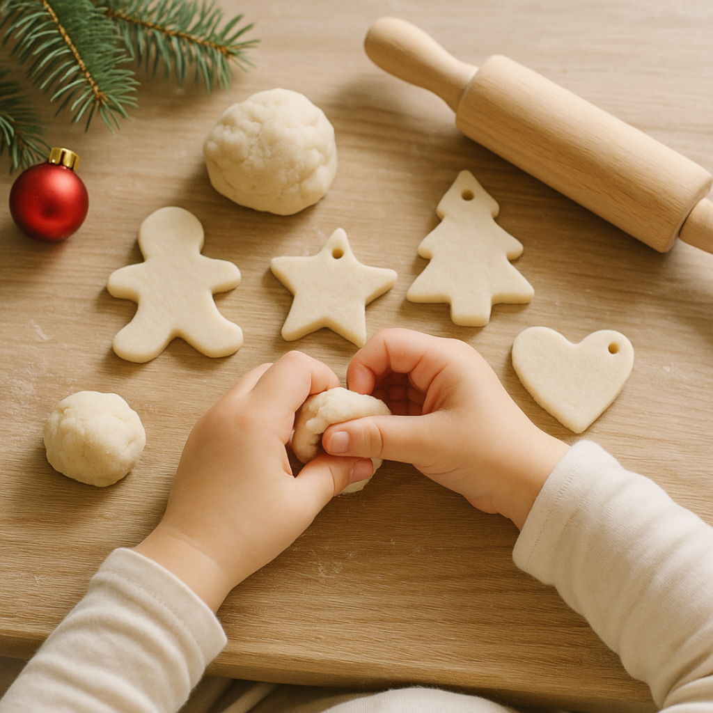 Les enfants adorent manipuler et modeler. La pâte à sel permet de créer des décorations à suspendre dans le sapin, tout en développant la motricité fine notamment.