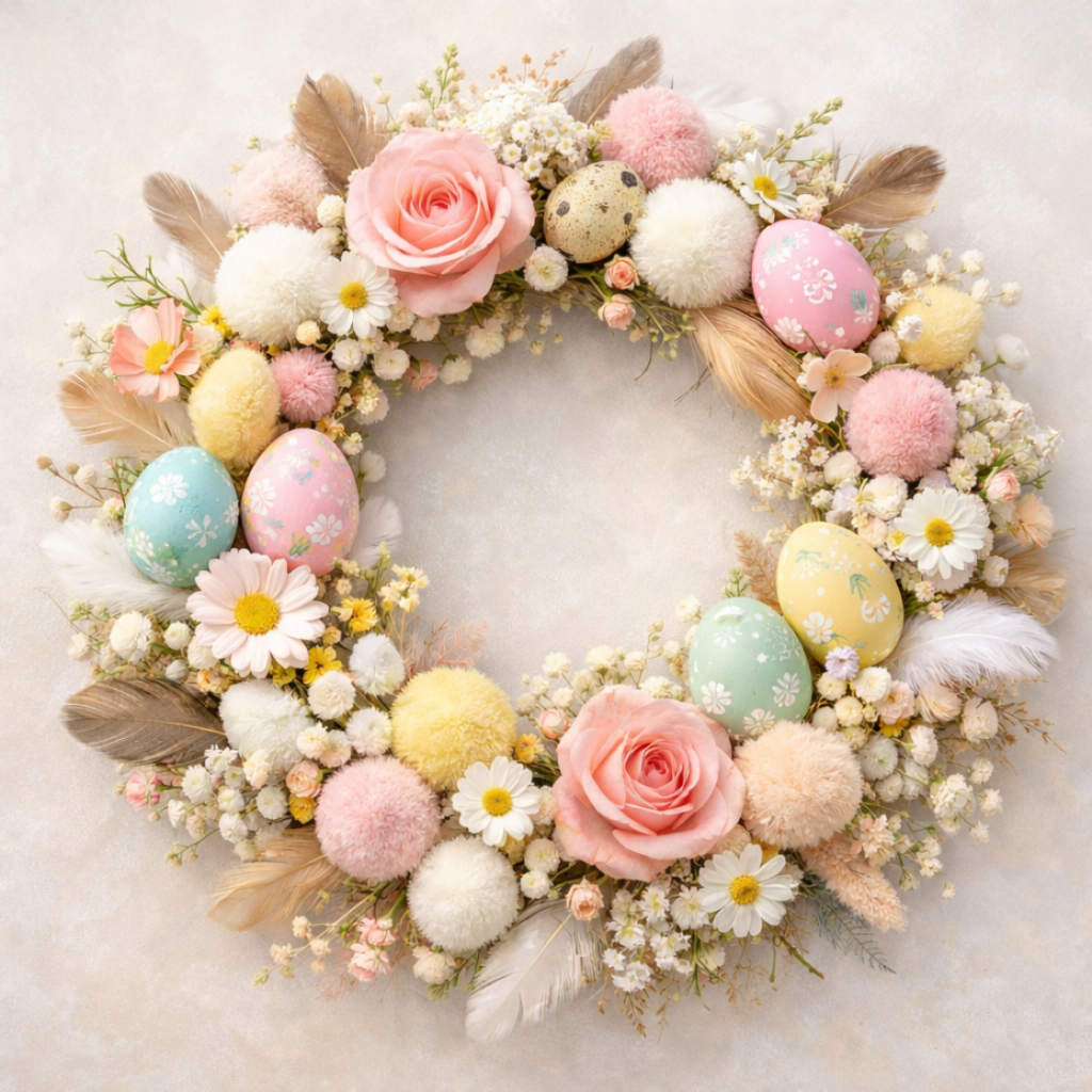 Le projet : Réaliser une belle couronne de Pâques pour décorer la porte d’entrée.