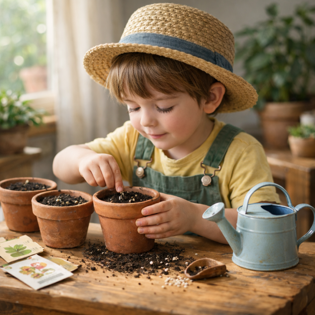 - Graines faciles : radis, capucines, herbes aromatiques (basilic, ciboulette)